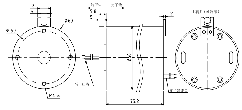 緊定螺絲固定。定子部分通過止轉片與設備固定部位連接。 |