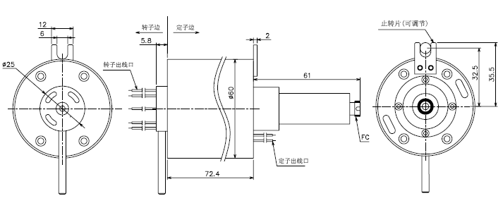 ● 支持1至12路光纖旋轉連接 + 1至72路功率或信號組合